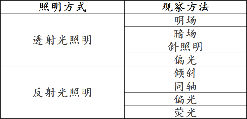 標本的類型決定了哪種照明方式的觀測效果最佳。在很多情況下,您可能需要使用多種方法。每種照明方式還包含以下幾種觀察方法。