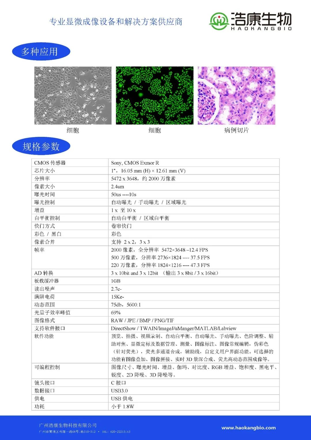 近期華中某國家重點(diǎn)實(shí)驗(yàn)室需要一臺倒置熒光顯微鏡,我們工程師了解到客戶主要用于拍攝細(xì)胞,偶爾也會用來拍攝組織染色切片,細(xì)胞具體熒光都是比較常用的染料,熒光也比較亮,不需要長時間曝光,所有倍數(shù)均有拍照需求,我們工程師綜合客戶的需求推薦了浩康生物倒置熒光顯微鏡HIF2000+高分辨率熒光顯微鏡相機(jī)HS2000E配置的高性價比方案,HS2000E采用sCMOS芯片,相比CCD具有更低的讀出噪聲和更高的性價比,經(jīng)過試用該配置方案完全滿足客戶需求,并贏得了客戶的認(rèn)可。