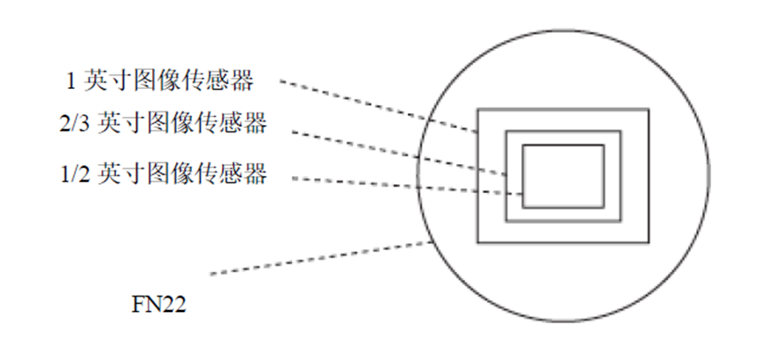 作為參考,圖示使用視場數22 的目鏡時的視野范圍以及通過1xC接口相機適配器所取得的各圖像傳感器尺寸的成像視野的范圍。從上圖可以看出,1英寸圖像傳感器拍攝區域更接近目鏡下的視野,在4/3英寸以下的圖像傳感器均可以正常成像,不會有黑邊等問題。