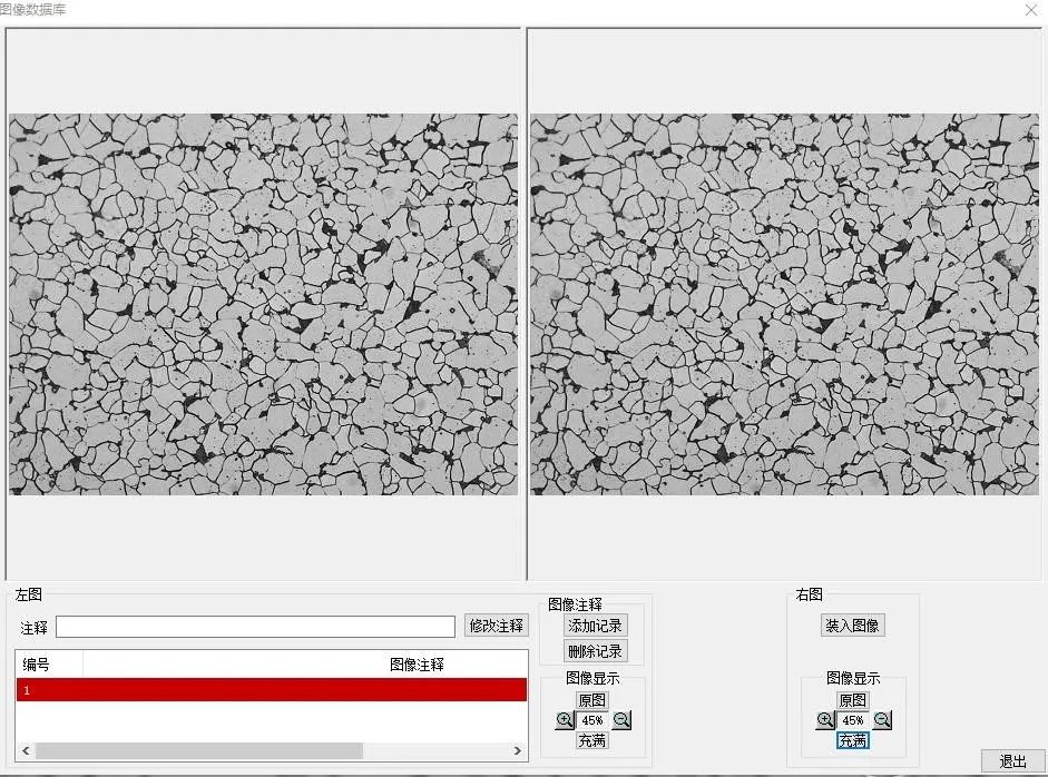 可將圖像文件裝入本軟件的圖像數據庫中,并在左邊窗口打開,右邊可裝入其他圖像進行圖像對比