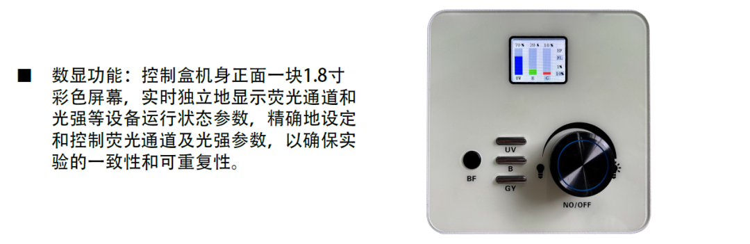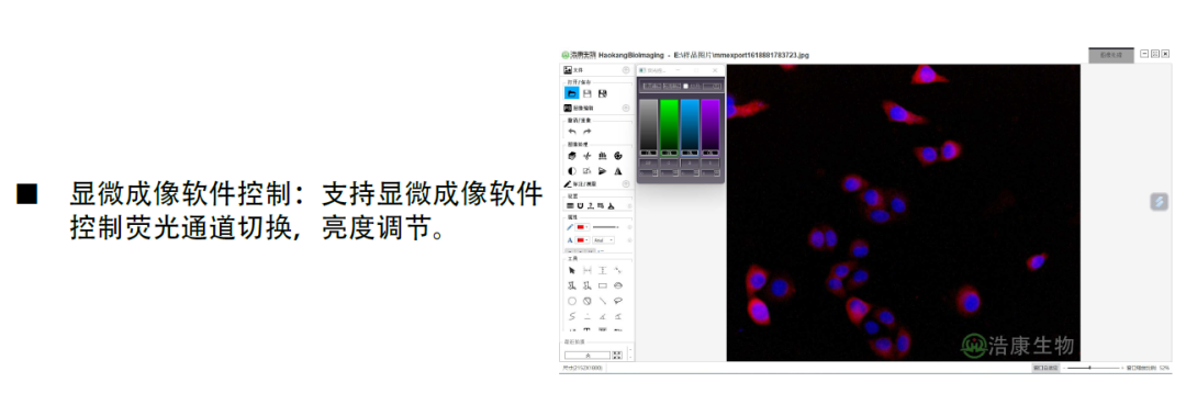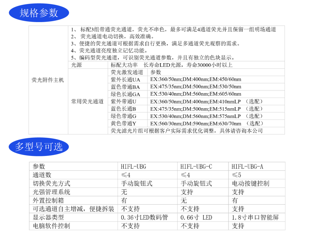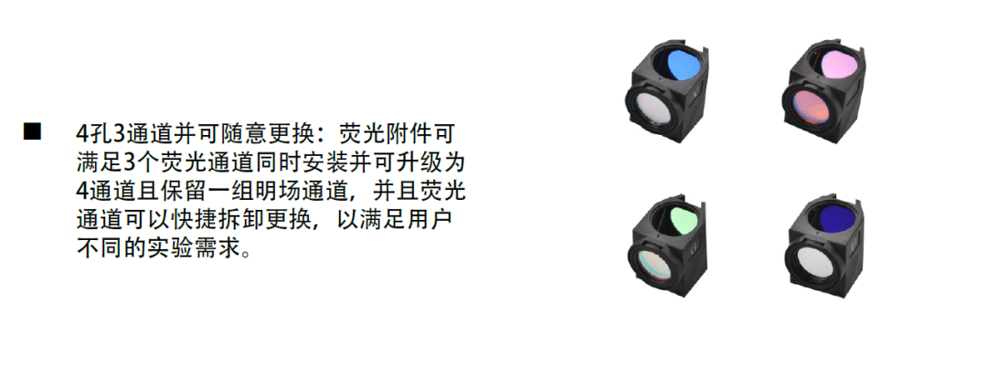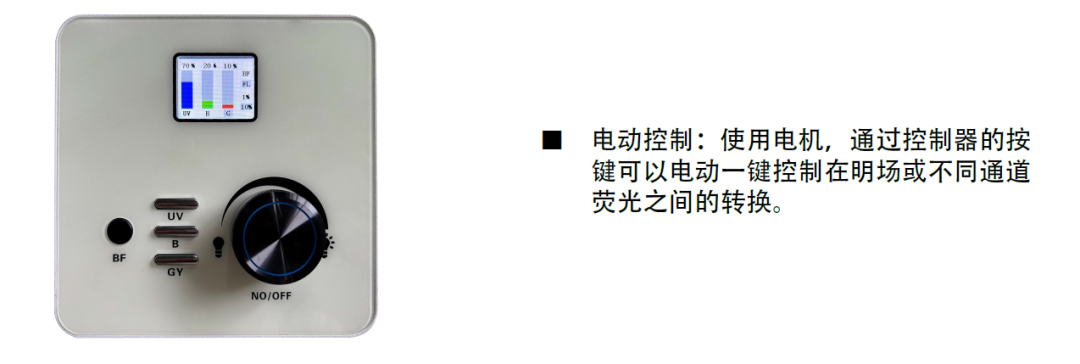浩康生物電動(dòng)倒置熒光附件HIFL-UBG,4孔3通道,可升級(jí)為5孔4通道,標(biāo)配紫外、藍(lán)色、綠色激發(fā)光組,廣泛應(yīng)用于細(xì)胞等的熒光觀察。通過控制器的按鍵可以電動(dòng)控制在明場(chǎng)或不同通道熒光之間的切換。