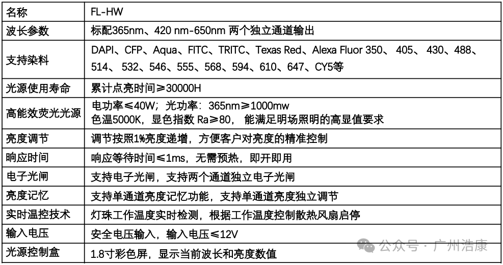 浩康生物大功率LED熒光光源FL-HW是專為替代泵燈開發(fā)的寬光譜LED光源,產品壽命長、 環(huán)保節(jié)能、 可控性強且照明均勻。