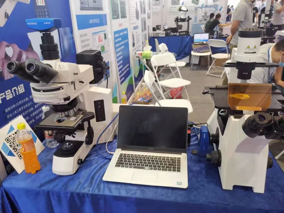 展會現場,高顏值產品,尤其是體視熒光顯微鏡和倒置熒光顯微鏡,引起了與會觀眾的極大的興趣。